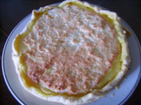 Garnisser un moule de la tarte, préalablement beuurré! Piquer le fond de la tarte avec une fourchette, la garnir de légumes secs, et mettre au four 20 minutes pour cuisson a blanc! Pendant ce temps, préparer la créme, laver les citrons, puis raper finement le zeste et pressez leur jus Dans un saladier, batter 1 oeufs entiers avec 2 jaunes d'oeufs(. reservez les blancs) avec le sucre en poudre,jusqu'a ce que le mélange blanchisse. Puis ajouter la mäïzena,le lait de coco,la créme liquide, le jus des citrons, et le zeste. Reverser la créme obtenue dans une casserole, faite cuire a feu doux , sans cesser de remuer, jusqu'a epaississement! Lorsque le fond de la tarte est cuit, retirer du four, et y déposer la creme. Dans un saladier, battre les blancs d'oeuf en neige, avec le sucre glace3. puis y incorporer, delicatement la noix de coco rapée! etaler cette preparation sur la créme, sur toute la surface de la tarte, et remettre au four 10 minutes, à 240°(th8) Laisser refroidir et server! |