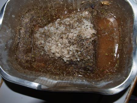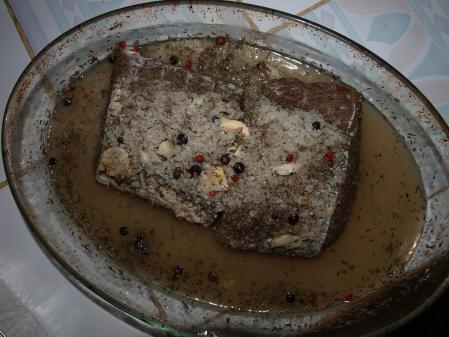 -Cannelle -Clous de girofle -Noix de muscade -Poivre noir -Coriandre -piment -200 gr de sucre Préparation : Déposer 1 cm de gros sel au fond d'un plat, avec un mélange d'herbes poser le PORC & BOEUF par dessus et recouvrir d'épices et de gros sel. Couvrir le plat d'un chiffon propre ou d'un film étirable, stocker dans un endroit frais (CAVE , ) pendant 4 jours. Au terme du salage, bien rincer pendant 4 heures en changeant l'eau toute les heures. sécher le PORC & BOEUF avec un linge frotter le PORC & BOEUF avec du cognac ou armagnac pour la désinfecter éventuellement.
