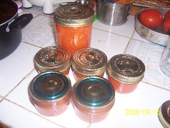 J'ai fais une première étape de Coulis de tomates Lavez les tomates Ebouillanter les tomates pendant quelques secondes, les égoutter et les peler. Les couper , retirer les graines et concasser la pulpe. - Peler et hacher finement l'oignon, oignon blanc , l'ail , l'échalote. - mettre du basilic, romarin,sel, poivre , - concentré de tomate, 2 pierres de sucre (facultatif) - huile d'olive faire chauffer (un demi verre) d'huile d'olive dans une casserole, ajouter le mélange , d'oignons , l'ail , l'échalote faire revenir en mélangeant avec une cuiller en bois. Lorsque le mélange est transparent, à peine blondi, ajouter les tomates concassées. Mélanger puis ajouter le bouquet garni, saler et poivrer. mijoter à découvert sur feu modéré pendant une vingtaine de minutes. Passer au tamis ou au moulin à légumes , Goûter pour rectifier l'assaisonnement puis mettre dans des bocaux puis sterilisation 20 minutes ......