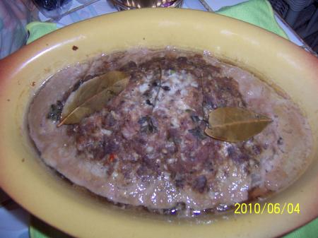 Echine de porc Lapin Oignon persil sel , poivre 2 cuil a soupe de cognac 1h four bain marie 1°60