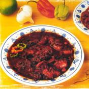 N.B.: La poudre de colombo se trouve dans les épiceries fines ou les magasins spécialisés ! Ingrédients: 800g de porc 1 courgette 1 aubergine 3 pommes de terre 1 mangue verte 7 gousses d'ail 4 cives 5 branches de persil 2 piments 1 branche de thym 1 oignon 1 pincée de coriandre et d'anis 2 cuill. à soupe de massalé ou de poudre à colombo 1 pincée de girofle en poudre le jus de 1 citron, vinaigre, huile, sel, poivre Préparation: 30min. + 30 min. de macération Cuisson: 1 heure 1. Assaisonnez le porc coupé en morceaux avec du sel, du poivre, 5 gousses d'ail écrasées, 1 piment haché, le girofle et un peu de vinaigre. Laissez macérer 30 min. environ. 2. Hachez finement les cives, l'oignon, le persil et l'ail restant. Faites-les revenir légèrement dans l'huile en ajoutant le coriandre, l'anis et le thym, puis la viande et la mangue coupée en morceaux. Faites ainsi dorer la viande, puis ajoutez le deuxième piment. 3. Coupez l'aubergine, la courgette et les pommes de terre pelées en morceaux. Ajoutez-les dans la cocotte avec le massalé (ou la poudre de colombo) délayé dans un peu d'eau. Couvrez d'eau et laissez cuire à couvert 50 minutes en remuant de temps à autre. Rectifiez l'assaisonnement. 4. 5 minutes avant la fin de la cuisson, arrosez du jus de citron |