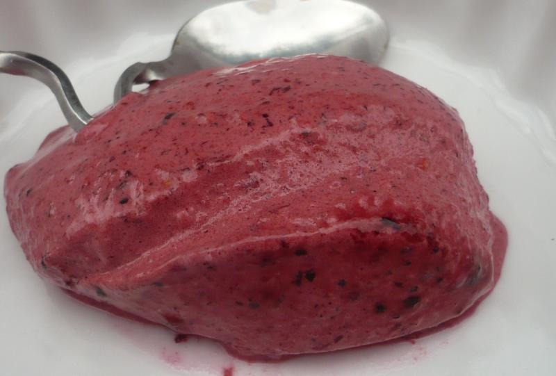 500 grs de fruits congelés : Pour moi c'est mûres, cassis, framboise.... j'adore les fruits rouge ! Pour la prochaine fois je mettrai des fraises pour adoucir un peu !