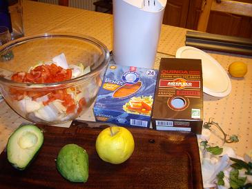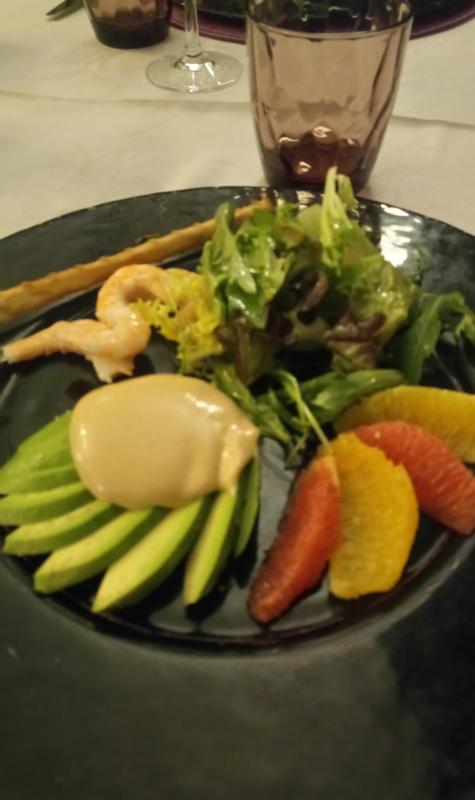 en entrée j avais préparé une salade avec de la salade verte coupée très finement, des morceaux d avocat, 2 boites de thon assaisonné une boite de maîs une bonne vinaigrette et voila!!!!!