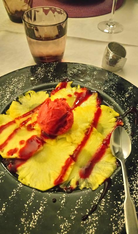 et Claude se régalait d une belle tranche d ananas roti et caramélisé avec sa petite meringue