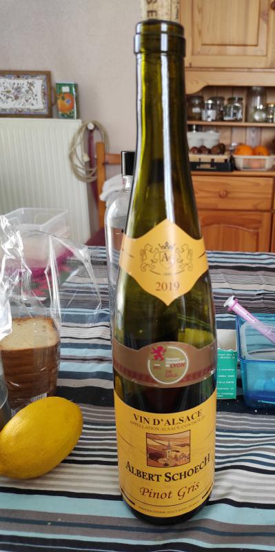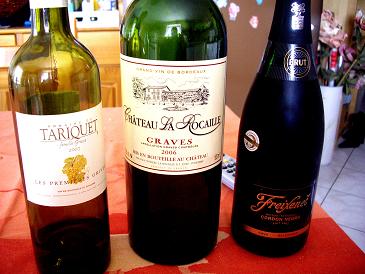il faut bien arroser : avec un petit vin blanc de Vendée (en hommage à Dély) petit vin que ma belle soeur ramène de ses promenades en Vendée et qu elle nous a donné lors de notre passage (un tout petit peu sucré il était parfait surtout bien frais)