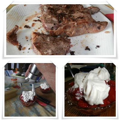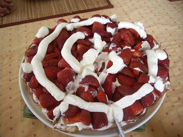 petit repas sympathique : pâté aux noix maison, daurade au four avec des champignons de paris, fromage et une petite tarte aux fraises (car en ce moment les seules fraises abordables sont celles d' Espagne qui ne sont pas très mûres alors j'en ai fait une tarte avec une petite crème patissière au sucre roux) arrosé d un petit vin blanc nantais et cet après midi repos!!!! moi je vais essayer de commencer un nouveau pull en coton et puis après un peu de repassage pour m avancer |