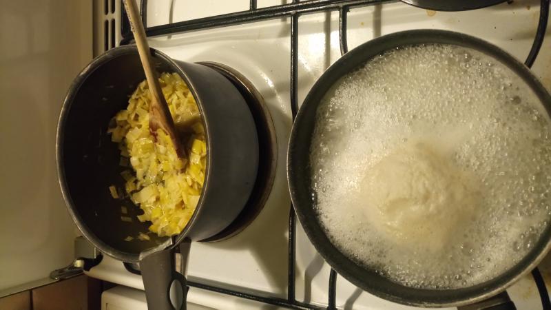 en ces journées démoralisantes, rien de tel pour se réchauffer - j avais acheté en promo un lot de "pot au feu 3 kg pour 10€" - du plat de côte et du gîte et hier j ai fait cuire tout cela tout l après midi - les viandes démarrées à froid avec du laurier et des clous de girofles au bout de 2 heures j ai rajouté les carottes, un oignons, du celeri rave, 1 heure après des côtes de bette, encore 1 heure après les poireaux et encore 1 heure après les pommes de terre : résultat un bon potage et les légumes hier soir, ce midi la viande avec encore des légumes, ce soir re-potage et hachis parmentier - s il reste encore des légumes je les ferai sautés à la poêle pour demain - |