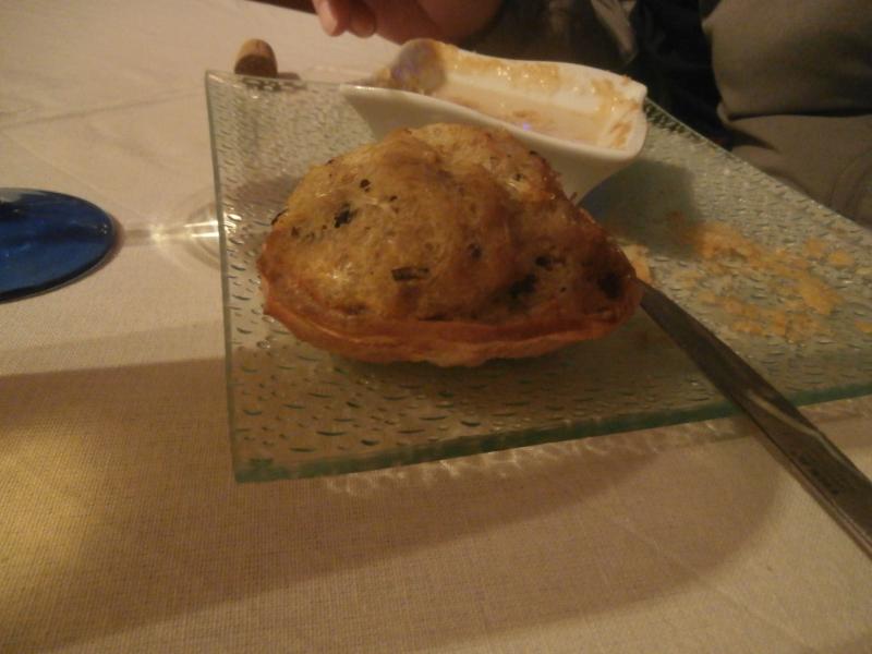 en entrée moi j avais choisi le ST MARCELLIN roti au miel et Claude un gravlax de saumon à l aneth, sorbet piquillos et guacamole aux gambas hélas je n ai pas eu le reflexe de faire les photos pour la suite moi j avais pris le faux filet échalotes sauce bordelaise servi avec des pommes grenailles et champignons du jour (en l occurance de petites girolles poëlées) et Claude s est régalé avec un risotto au poulpes et saumon roti au chorizo
