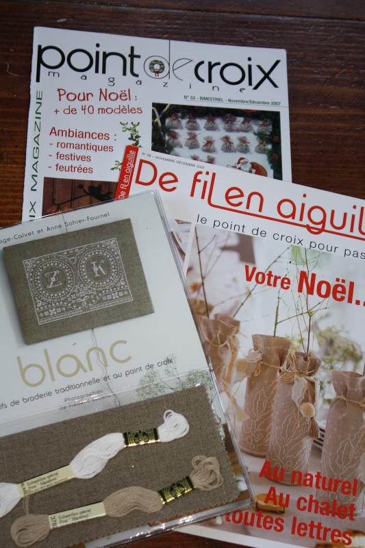 Je suis abonnée à la médiathèque,donc,ce que je recherche ce sont surtout les revues ou les bouquins utiles! Au prix où sont ces bouquins;chez Emmaüs,les prix sont vraiment très attractifs,et j'ai la chance de dénicher assez souvent des choses très intéressantes,comme ce jour-là! J'y ai trouvé 2 revues de broderie au point de croix,visiblement jamais ouvertes,au prix de 0€40 la revue! J'ai trouvé aussi ce livre (neuf,pas déballé) avec un petit coupon de lin et 2 écheveaux de fils à broder au prix d'1€50! (valeur neuve;10€). j'ai fait aussi une bonne affaire avec cette encyclopédie de couture,en très bon état,à 2€!!!