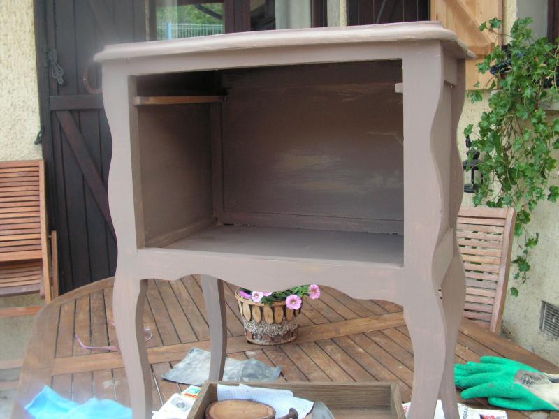 Je dirais aussi une remise en état avant le relooking! Il y a quelques temps j'avais acheté une petite table de chevet (5€),chez Emmaüs et un petit meuble de rangement (30€) sur une brocante. Ces 2 petits meubles me plaisaient beaucoup,mais étaient bien abîmés,en particulier la table de chevet quui avait du être exposée à la pluie,car le vernis était complètement parti et le bois avait triste mine; il était temps d'intervenir!!!