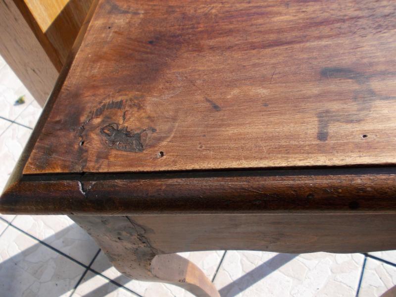 Il fallait employer les grands moyens;c'est ce que j'ai fait! J'ai donc poncé,mis un enduit blanc 'spécial bois',pour éviter que le tanin ne ressorte...... J'ai employé un peu d'huile de coude pour reponcer de nouveau,et j'ai appliqué une peinture à l'ancienne de couleur 'taupe',de la marque 'Libéron';une très jolie peinture.