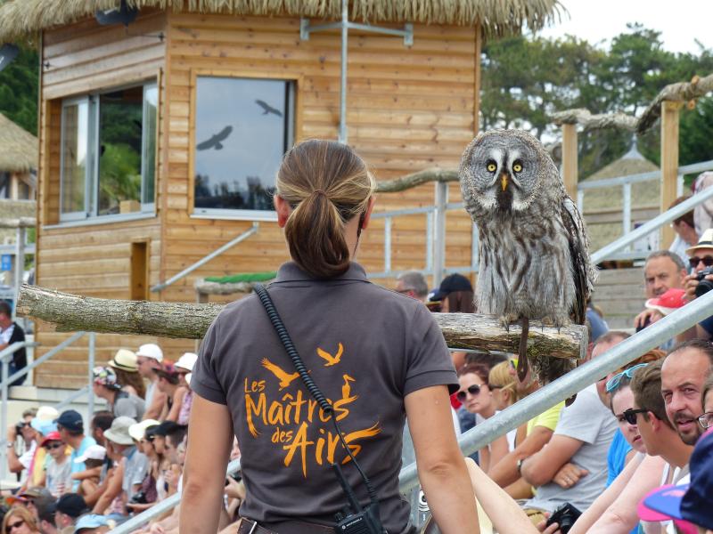 Magnifique ce spectacle , beau travail des dresseurs. Les oiseaux sortaient de toutes parts , la mise en scène était bien rytmée. Le clou du spectacle fût un mélange de différentes espèces d'oiseaux,rapaces,aras bleus,cacatoès, perruches,pélicans, marabout,chouettes,hiboux,ibis royal,cigognes et j'en oublie sûrement !!! Certains oiseaux sortaient de ces cages et s'envolaient de cette tour pour venir se poser près de nous ou sur leur dresseur.