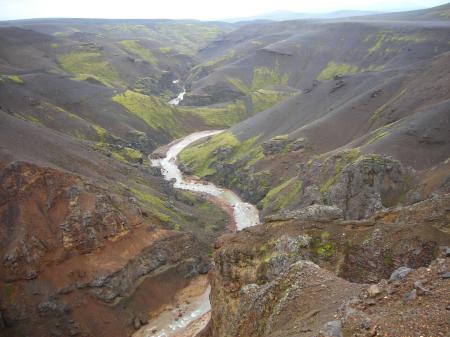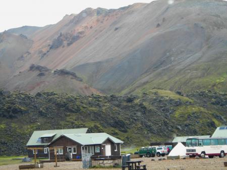 Nous arrivons vers 15 heures au refuge de DREKAGIL, qui veut dire "la rivière du dragon". Nous nous installons pour deux nuits. Compte-tenu de la longueur de l'été en Islande, ce refuge est ouvert actuellement environ 70 jours par an. |