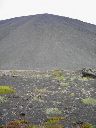 ...pour redescendre de l’autre côté. C'est un volcan explosif aux pentes striées, de sable noir, datant de 2500 ans.