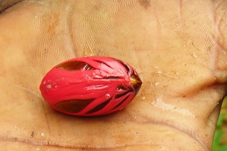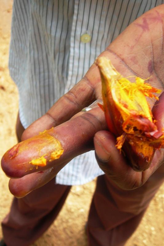 Le guide m'a fait sentir les feuilles et reconnaître les coques des épices. Trop difficile... car j'ai l'habitude de les voir sous leur forme séchée ! Il avait plu ce matin là et la campagne sentait très bon avec tous ses parfums. Qu'est-ce ? Regardez....