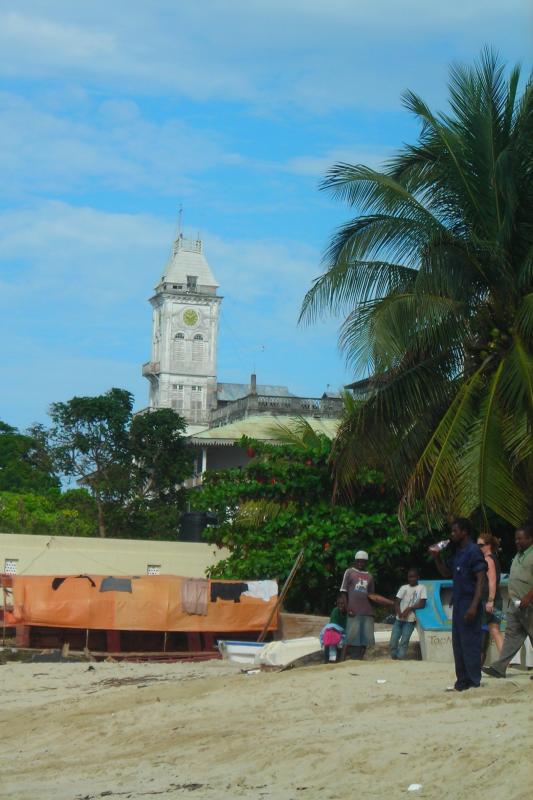 On distingue la tour de la Maison des merveilles. Construite en 1883, elle est devenue la résidence du Sultan -siège du gouvernement et maintenant musée d'histoire de Zanzibar.