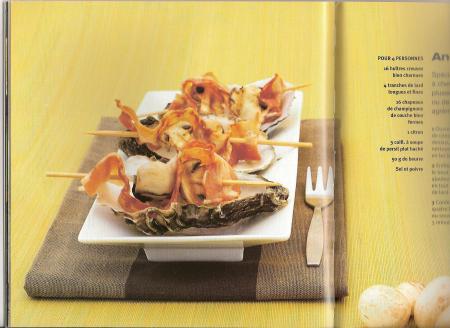 Spécialité typiquement anglo-saxonne, ce sont des brochettes d'huitres accompagnées de lard (ou bacon) agrémentées de champignons.