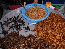 Ma fille courageusement a consommé de cet assortiment vivant .. sauterelles et autres insectes grillés ...