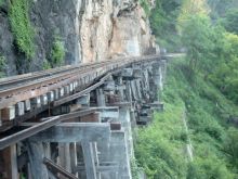 Et bien sûr celui qui servi à la réalisation du film ... le pont de la rivière Kwaï ...Bien que le film Le pont de la rivière Kwaï, de David Lean, en 1957, montre le pont en bambou, vous serez certainement déçu par la réalité. Le pont ressemble à tous les ponts : en acier et en béton ! Il a été reconstruit après la Seconde guerre mondiale. Vous verrez certainement des gens venir se recueillir à cet endroit, surement des descendants d’anciens prisonniers. La vue n'est pas banale et le récit de sa construction impressionnant : Que d'histoire! Pendant la seconde guerre mondiale, 30000 prisonniers alliés et 100000 travailleurs asiatiques ont travaillé pour construire cette ligne de chemin de fer que les japonais comptaient utiliser pour relier la Thaïlande à la Birmanie dans le but d'envahir l'Inde. Des milliers y laissèrent leur vie. Il faut dire que sa construction était prévue pour durer 5 ans et que les japonais (soutenu par le gouvernement de Vichy) l'ont fait réaliser en 16 mois, torturant les prisonniers pour les faire travailler plus dur encore.