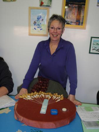 Véro donner un cours de dentelles aux fuseaux, il faut être très attentif pour faire cela mais quand on voit le résultat cela vaux le coup