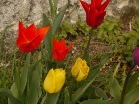 Entre les averses et le soleil, la végétation y trouve son compte. Verte encore et non ouverte vendredi, ce matin, une magnifique tulipe, la première de nos plantations a entamée sa floraison. Instant figé grâce à mon apn. |