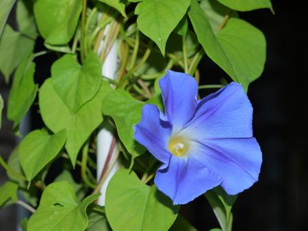 Après des semaines et des jours d'attente, hier matin, un cone s'allongeant à donner vie dans la matinée à ma première fleur d'ipomée bleue. Elle était située toute en hauteur, il fut difficile de la photographier bien qu'aidée d'une chaise. Le temps de voir ce que donnait les photos sur le pc, la pauvre fleur qui venait à peine de naître était déjà fanée.