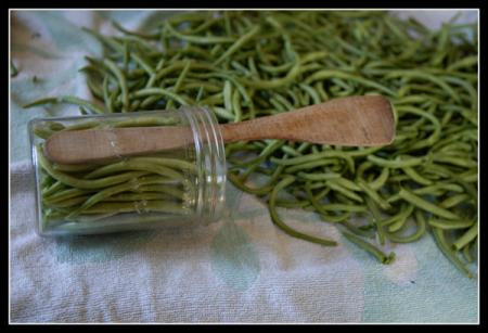 C'est la pleine saison et vendredi matin, j'entreprends la cueillette de mes haricots, j'en ai ramassé quand même 6 kgs, je profite d'avoir de la main d'oeuvre, et ce n'est pas si souvent, !!!!! pour les éplucher.