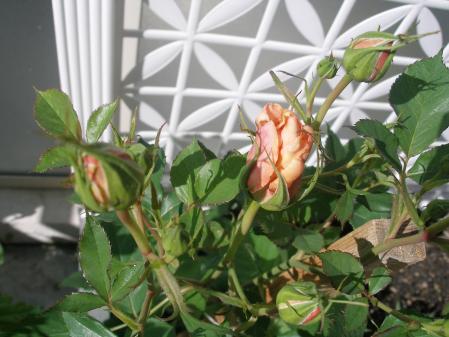 Le rosier nain qui n'en finit pas de grandir, avec plein de boutons aussi ...