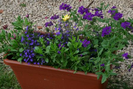 ramenées d'Auvergne se plaisent ici! il y a des plantes qui viennent des bords des forêts(je ne sais pas leur nom), le "bleuet" appelé centaure, et quelques violettes et aussi les fraises sauvages que j'avais dans un pot, je les ai mises au sol elles sont en avance par rapport à là-bas!