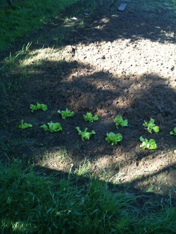 j'ai vu ce matin que les fraises commençaient à rosir!! les salades et les oignons sur la gauche sont bien partis!!!