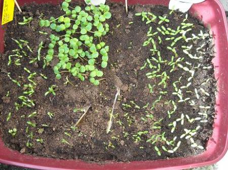 et là aussi, ça y'est ils démmarent, je dirais même qu'ils sont plus beaux que les autres alors qu'ils ont été repiqués plus tard. Donc je suis contente, maintenant je vais les protéger des bestioles .... Juste devant j'ai repiqué quelques scaroles, batavia et laitues pain de sucre