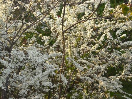 ...que des averses... alors demain peut-être ! Sur la photo le premier arbre en fleurs (blanches), que je peux voir de la fenêtre de la cuisine! |