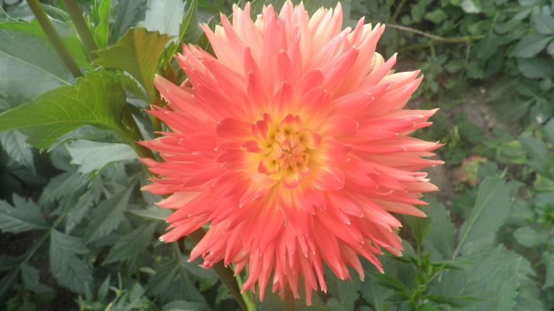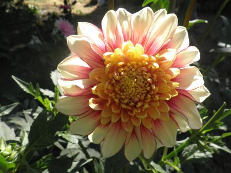 J'en profite pour vous montrer cette fleur de dahlia un peu bizarre,que j'ai eu la surprise de cueillir l'année dernière.Il n'y en avait qu'une sur ce pied,dommage,car elle était très originale,2 couleurs,coupées à la verticale,j'ai trouvé celà si surprenant que je me suis empressée de prendre une photo!