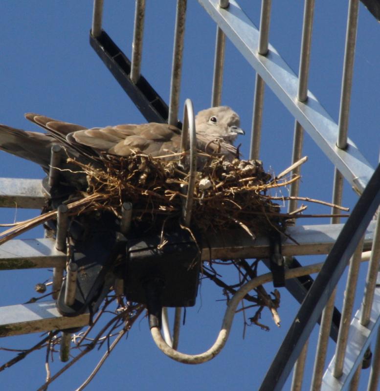 Rappelez-vous, il y a à peine 2 semaines des petites tourterelles quittaient le nid sous notre pergola...Et bien, ce nid n'a pas été vide très longtemps, un autre couple s'y est installé très, très vite... j'ai eu à peine le temps de nettoyer la poutre qui était pleine d' excréments !