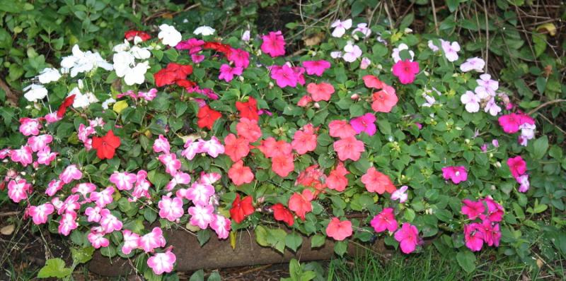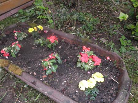 J'ai repiqué des impatiences dans ce vieux bac en fonte,c'est un endroit ombragé qui convient bien à ces fleurs!