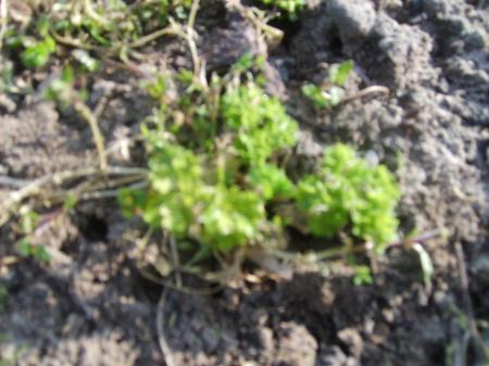 Le persil aussi,dommage,la photo est floue,c'est la graine de l'année dernière qui repart...
