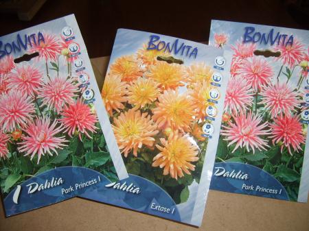 Et, des bulbes de dalhia(j'en achète au fur et à mesure) qui vont compléter ceux qui sont dans la cave et,qui attendent des jours meilleurs pour être plantés!