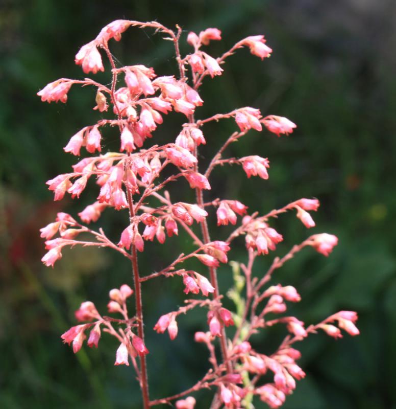 les heuchères; j'en ai plusieurs aux feuillages de couleurs différentes; cette plante est aussi appelé 'désespoir du peintre', en raison de son abondance de fleurettes minuscules.