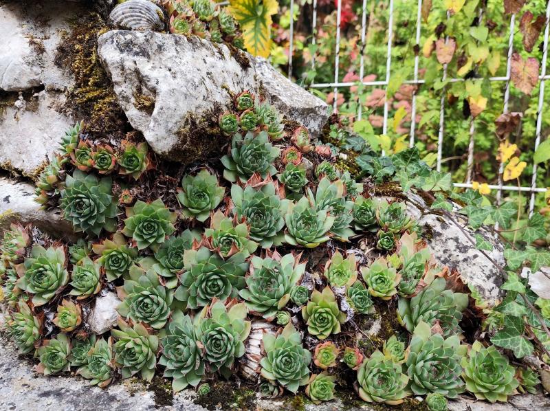 et,la joubarde(j'appelle celà ,les petits artichauts)qui elle,n'a pas souffert de l'hiver!