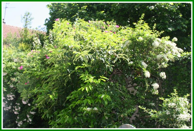 Un coin du jardin que j'aime beaucoup où la bignone voisine avec l'arbre à papillon!