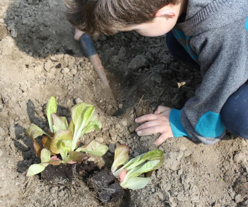 Pendant ce temps,Maël,qui n'avait pas classe(sa maitresse faisait grève )a décidé de m'aider à faire des semis...Je sais bien,ce n'était pas triste,mais,celà lui faisait tellement plaisir!!!