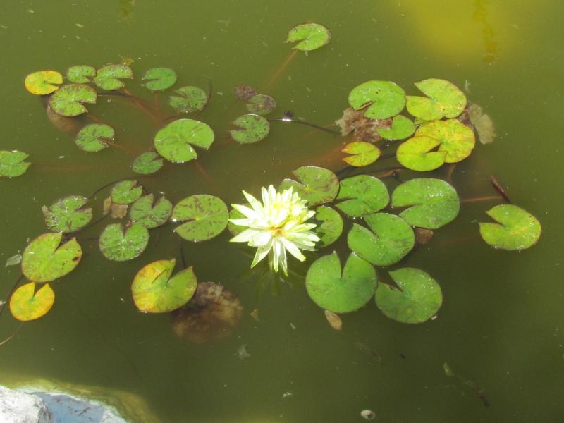 Voila une image de mon petit basin de mon jardin avec des poissons et une fontaine . le problème c'est que l'eau n'est pas claire , J'ai beau acheter du produis rien n'a faire !