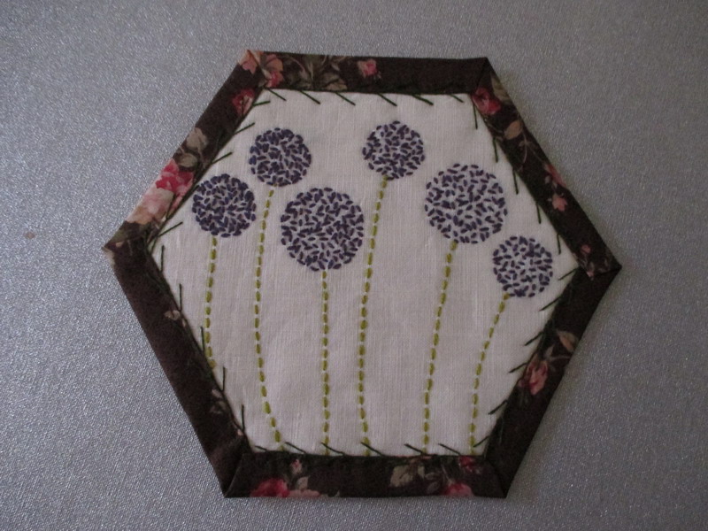 Fait enfin chaud...alors la broderie avec de la laine....ça devient difficile....aussi voici un seul hexagone !