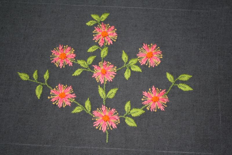 Il y a si lontemps que je brode des petites croix que l'envie m'a pris de me remettre à la broderie traditionnelle. Encouragée par Marie-Cécile - merci ! - j'ai commencé le "bloc du mois 2011" proposé par la Fée Pirouette ! ... voici les deux premières fleurs... du premier bloc... il y aura 15 blocs à monter en patch !