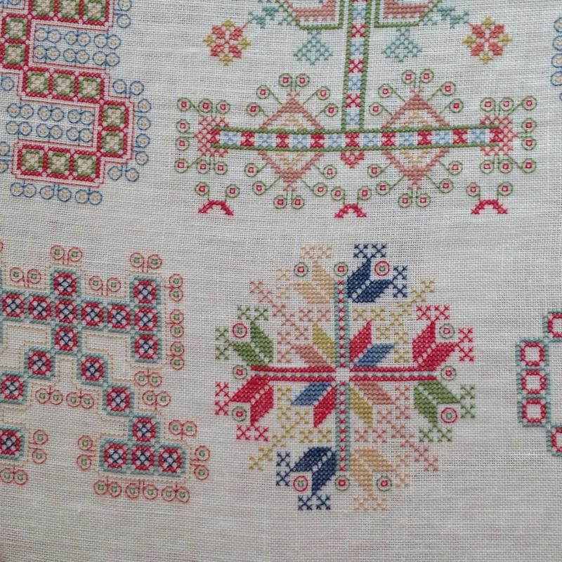 ...puisque le bloc du mois de la Fée Pirouette est terminé, j'ai repris avec plaisir mon sempler ancien... un fil sur deux fils de lin ,,, et ma loupe !!!