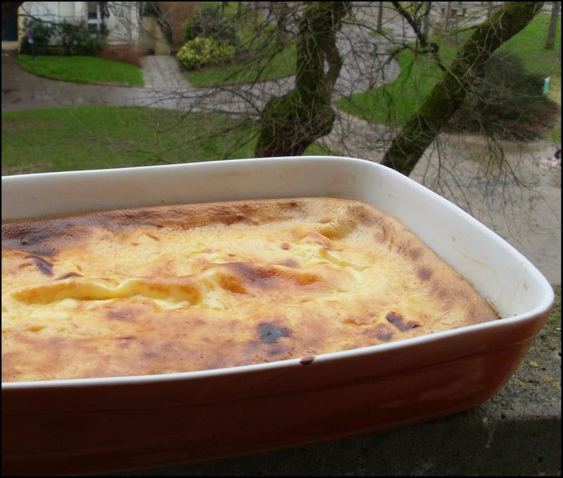 Je vous remet la recette : Pour : 3 personnes Préparation : 20 minutes Cuisson : 30 minutes selon four - 100 g de gruyère - 100 g de farine - 25 g de fécule de pommes de terre - 6 oeufs - 100 g de beurre - 1/2 litre de lait - Noix de muscade en poudre (j'en n'ai pas mis) - 1 pincée de sel - Poivre frais moulu Dans une casserole, faites bouillir le lait avec le sel, une pincée de poivre et un peu de muscade. Dans une autre casserole, faites fondre le beurre, puis ajoutez d’un seul coup la farine et la fécule ensemble. Fouettez énergiquement, puis versez peu à peu le lait bouillant. En remuant toujours, amenez à ébullition. Retirez du feu aussitôt. Une minute après, ajoutez les jaunes deux par deux en mélangeant et incorporez le fromage râpé. Préchauffez le four à 200°C, thermostat 7. Montez les blancs en neige et ajoutez-les à la préparation en soulevant délicatement de bas en haut. Quand l’ensemble est homogène, remplissez le ou les moules préalablement beurrés et farinés au 3/4, pas plus. Enfournez environ 25 minutes. Bonne fin de journée ! |