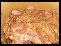 - 2 cubes or maggi - 2 gousses d'ail - 2 échalotes - Paprika - Gingembre - 4 cuillères à soupe de moutarde - Sel Dans un faitout, déposez la viande et versez une bonne quantité de paprika et de gingembre (ne pas se contentez de saupoudrer!). Malaxez avec les mains énergiquement. Ajoutez les cubes or maggi émiettés puis, l'ail et les échalotes émincés. Incorporez la moutarde et salez. Malaxez bien avec les mains. Laissez macérer l'ensemble dans le faitout pendant au moins deux à trois heures. Il ne vous restera plus qu'à griller la viande. Bon appétit! |