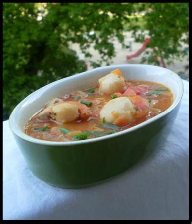 Difficulté : Facile Préparation : 5 minutes Cuisson : 15 minutes Pour : 2 personnes - 12 noix de Saint-Jacques avec leur corail - 2 tomates coupées en cubes réguliers - 1,5 cuillère à café de fumet de poisson - 300 ml d'eau (ou de vin blanc si vous en avez) - Huile d'olive - Jus de citron - Persil ciselé - Herbes de Provence - 1 échalote émincée Faites revenir dans une poêle l'échalote dans l'huile d'olive. Ajoutez les dés de tomates et laissez mijoter 5 minutes. Versez le fumet de poisson dilué dans l'eau et mettez dans la poêle avec le jus de citron. Incorporez aussi le persil, les herbes de Provence. Quand tout est mélangé, déposez les noix de Saint Jacques et laissez-les cuire quelques minutes seulement. Servez bien chaud avec du riz parfumé!!! Ici, vous n'avez pas besoin ni de sel ni de poivre car le fumet de poisson parfume parfaitement le plat et le saumon fumé donne le goût salé.