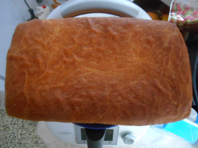 500 gr de farine 300 ml d' eau 30 gr de levure 30 gr de beurre 10 gr de sel 1 c à c de sucre Mettre l' eau dans le bol le sucre et la levure 5' 37°/Vit2 Ajouter la farine,le beurre et le sel 5'en épi. Dans un plat laisser doubler la pâte recouverte d'un essuie dans un endroit chaud. Repétrire le pain et le déposer dans une platine à pain et laisser lever recouvrir d'un essuie et laisser lever et chaud.