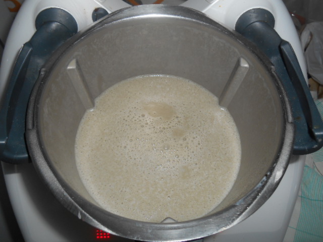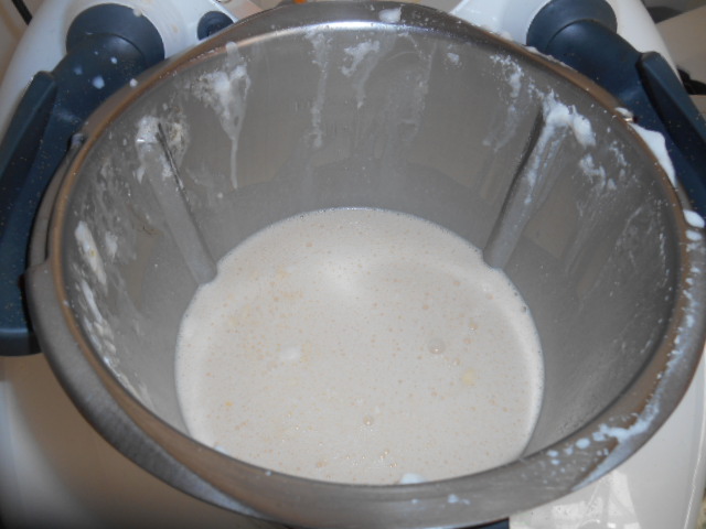 Dans le bol du thermomix ajouter la farine,le beurre,le lait et mixer 7'à 90°/Vit 2,5